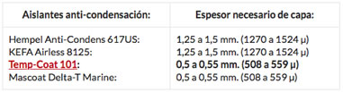 - El control de la condensación en tuberías, válvulas, mamparos y, en general, cualquier lugar donde resulten ineficaces los aislamientos convencionales.